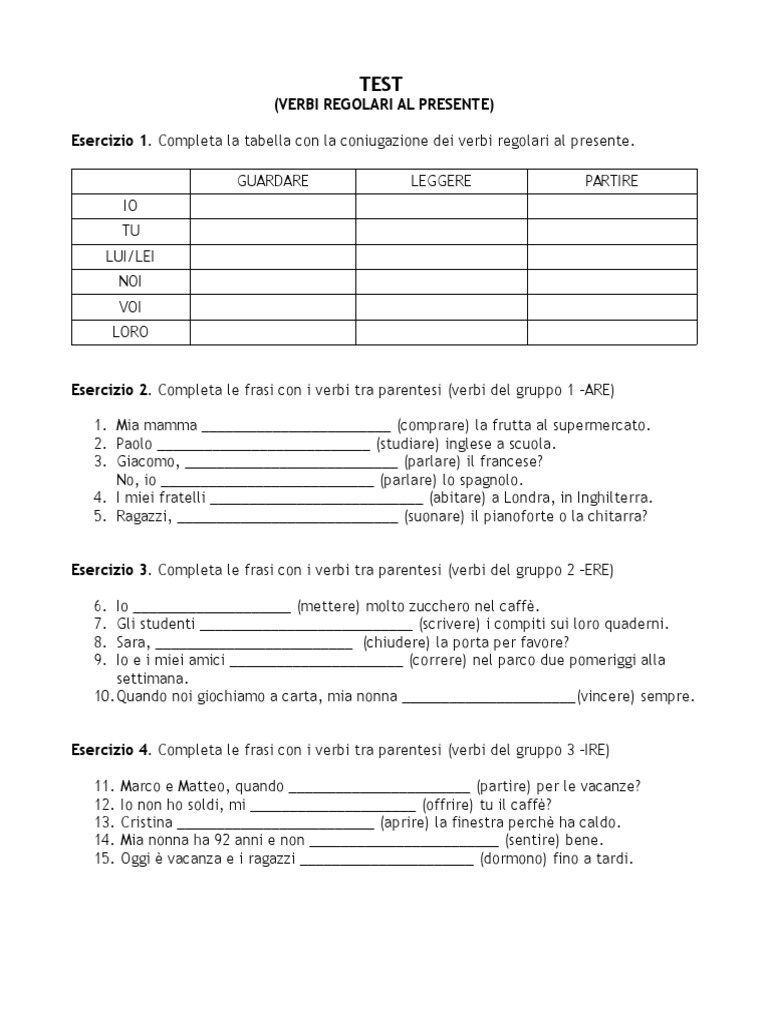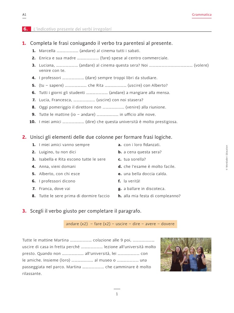 A1 Grammatica Indicativo Pres Verbi Irregolari