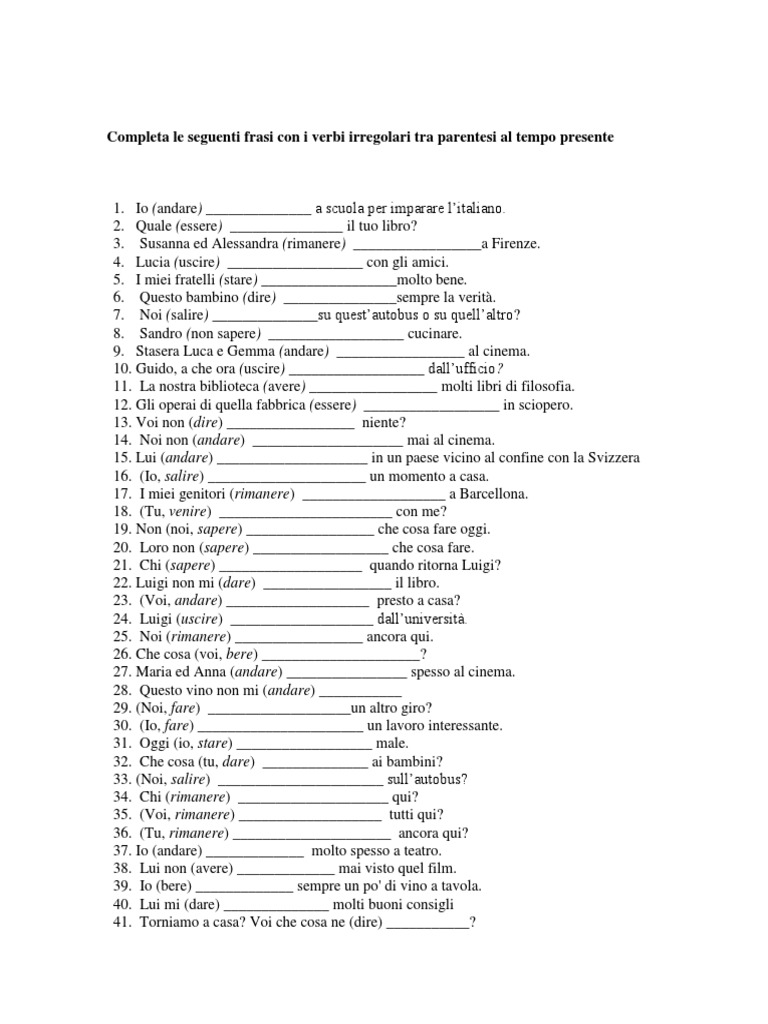 Frasi Con I Verbi Irregolari